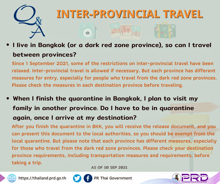 Lees hier meer over interprovincial reizen: https://www.tatnews.org/2021/09/updates-on-domestic-travel-in-thailand-in-september-2021/
