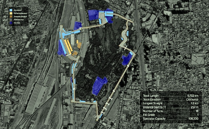 Het voorgestelde circuit is bepaald geen klein rondje om de kerk. Met een lengte van 5,732 kilometer en een route die met de klok mee wordt gereden, doet de baan qua afstand niet onder voor gevestigde namen op de kalender. De coureurs zullen rakelings langs enkele van de bekendste plekken van Bangkok scheuren. Denk aan het immense Krungthep Aphiwat Central Terminal, het Mo Chit busstation en natuurlijk de wereldberoemde Chatuchak Weekend Market.