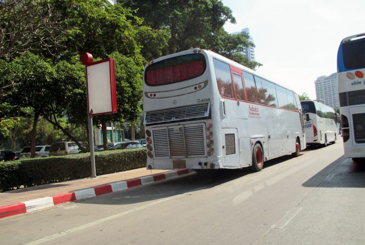 Sinds kort zijn er op een aantal plaatsen langs de Jomtien Beach road ook de bekende rood- wit strepen aangebracht! Het verkeer had nu een betere doorstroom, niet gehinderd door allerlei voertuigen die stopten.