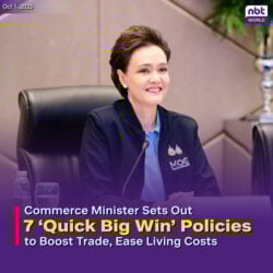 Minister van Handel Suphajee Suthumpun heeft zeven prioriteitsmaatregelen aangekondigd onder de naam ‘Quick Big Win’. Deze zijn gericht op het versnellen van internationale handelsonderhandelingen, het ondersteunen van boeren en mkb’s, en het verlichten van de hoge kosten van levensonderhoud. Van vrijhandelsdeals tot goedkopere meststoffen en “Blauwe Vlag”-markten: de plannen moeten zowel de internationale concurrentiepositie als de koopkracht van de Thaise bevolking versterken.