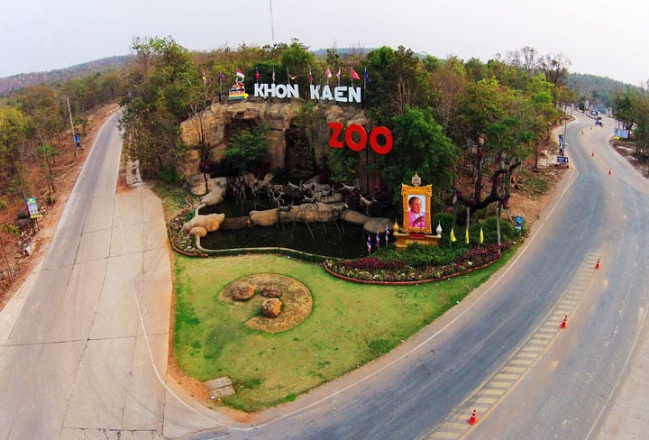 Ik wist niet, dat er een dierentuin in Khon Kaen was, dus maar even opgezocht op internet. De Khon Kaen Zoo bestaat ook nog niet zo lang, het is pas in 2013 officieel geopend. Het is bedoeld als een educatief centrum voor het behoud van zeldzame dieren in het wild onder het concept van een gemeenschapsbos, waarin mensen en bossen harmonieus kunnen leven. Er zijn meer dan 50 soorten dieren uit binnen- en buitenland te zien vanaf een “Skywalk” en er rijdt een treintje over het uitgestrekte gebied met een apart park voor wel 300 hertensoorten. Daarnaast is er een zeehondenshow. Het grote waterpark heeft een zwembad voor volwassenen en kinderen, een slider en een 450 meter lange whirlpool.