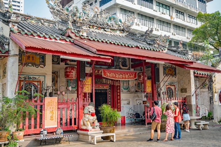 Vanuit het So Heng Tai-huis leidt een smal pad naar Sanchao Chow Sue Kong, een Hokkien-schrijn uit 1804. Onderweg kom je een verlaten vintage Fiat 500 tegen, geparkeerd niet ver van een grote boom versierd met kleurrijke linten. Vergeet ook niet de straatkunst te bewonderen tijdens de wandeling naar het heiligdom.