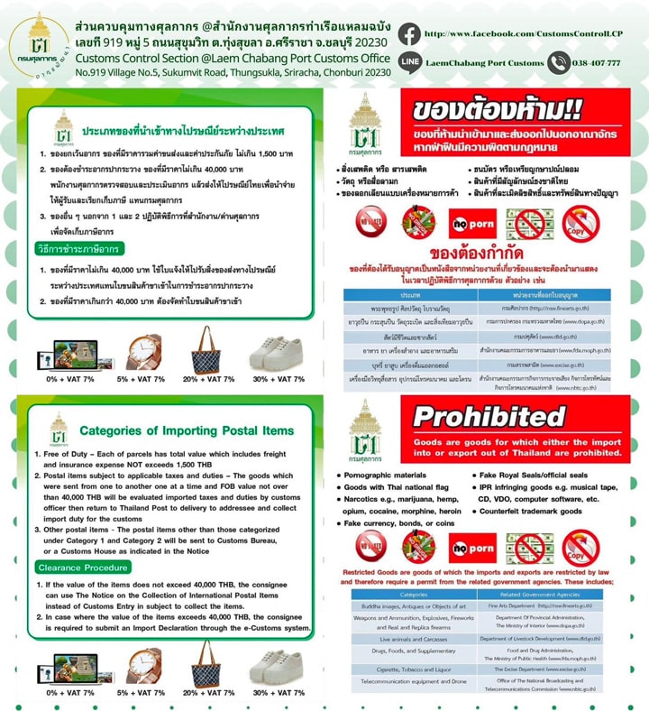 De douaneprocedure voor goederen die per post in of uit Thailand worden ingevoerd.