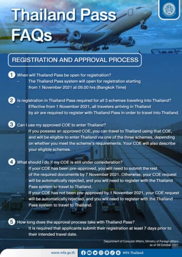 – Degenen die na 7 november 2021 reizen, dienen zich ten minste 7 dagen voor vertrek te registreren in het Thailand Pass-systeem.