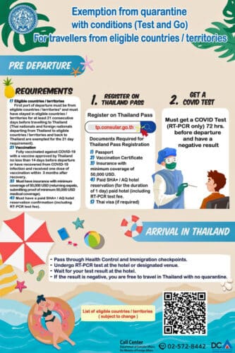 - Er zijn 7 verplichtingen waar je aan moet voldoen als je zonder quarantaine naar Thailand wil reizen:
