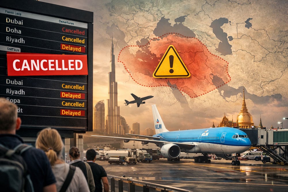 Veel vluchten tussen Europa en Thailand maken gebruik van overstaphubs in het Midden-Oosten. Dubai en Riyad spelen daarin een belangrijke rol. Wanneer vluchten daar worden geschrapt of omgeleid, moeten maatschappijen alternatieven zoeken.