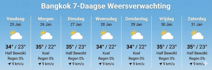 De laatste week van januari laat zien hoe groot de verschillen binnen Thailand kunnen zijn. Terwijl het noorden wakker wordt met frisse ochtenden en soms zelfs kou op hoogte, krijgen kustgebieden te maken met wind en hogere golven. Voor reizigers en inwoners betekent dat schakelen en plannen.
